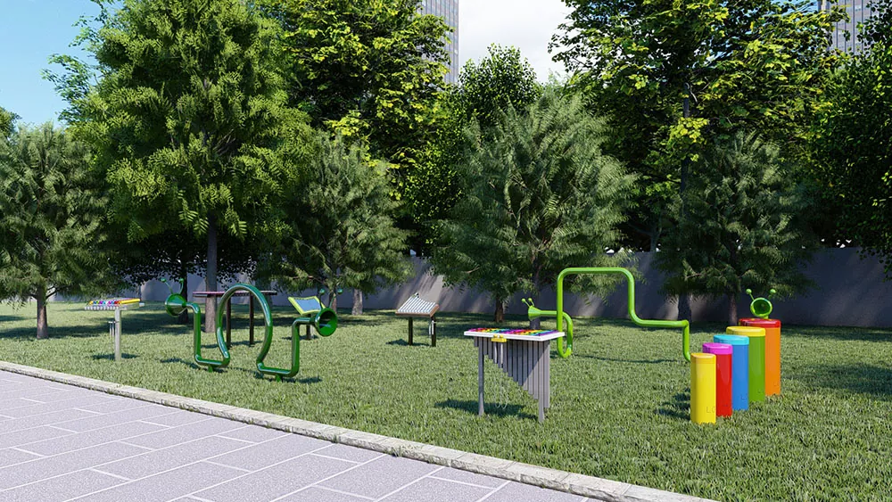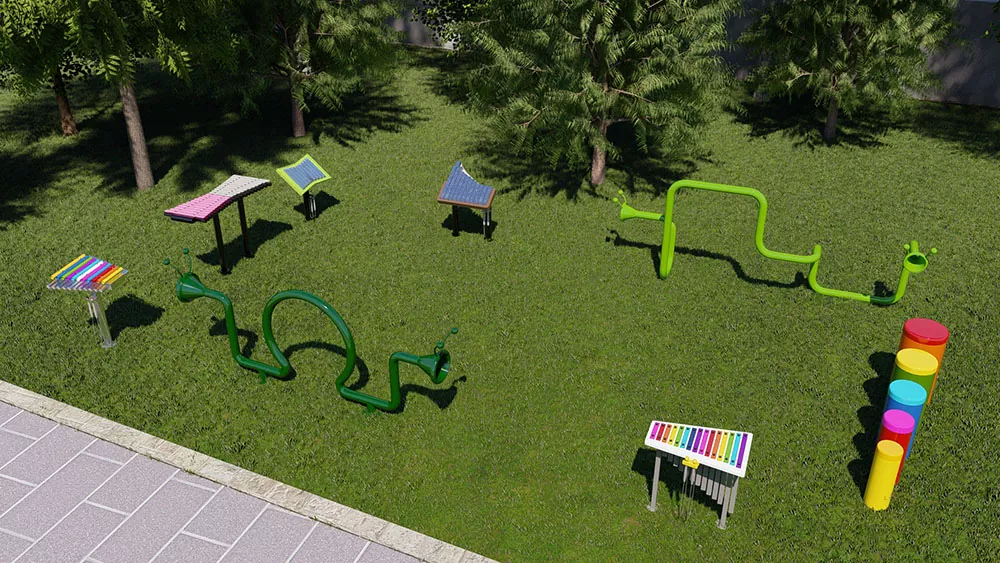 I-Melody Outdoor Musical Park Ithuluzi iyinhlangano yefoni ehlangene nenhle yangaphandle edonsela abalaleli ngethoni yayo ekhanyayo nehlala isikhathi eside. Inamanothi ayisishiyagalolunye we-aluminium, ahlelwe esikalini sePentatonic e-C okukhulu, akhipha umsindo omnandi ocwebezelayo ebangeni eliphakathi nendawo / ama-soprano. Uhlaka lwayo oluhlala isikhathi eside kanye nomthengisi wenziwe ngamapayipi aqinile asezingeni eliphakeme, aqinisekise impilo ende nokuqina.